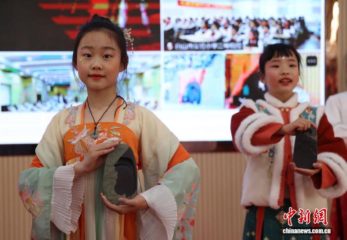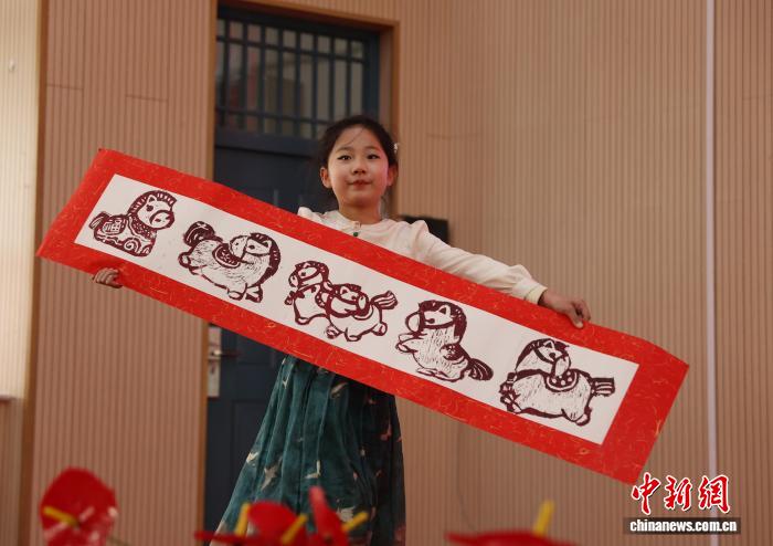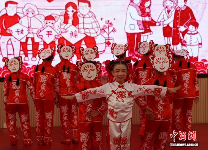 图为银川市金凤区第108小教教死为线上其余黉舍师死演出非遗跳舞《剪纸密斯》。中新社记者 于晶 摄